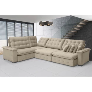 Sofá Manchester 2,63x3,83m de Canto, Retrátil e Reclinável - Bege